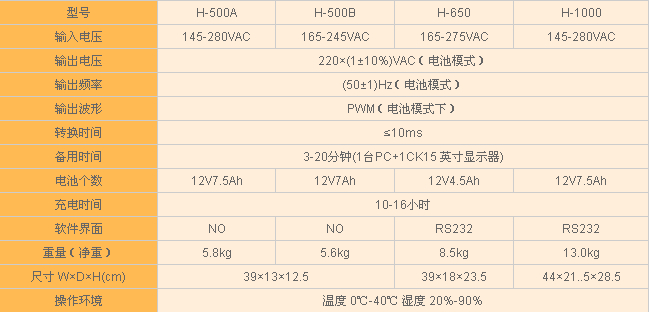 技術參數 (UPS-H不間斷電源)